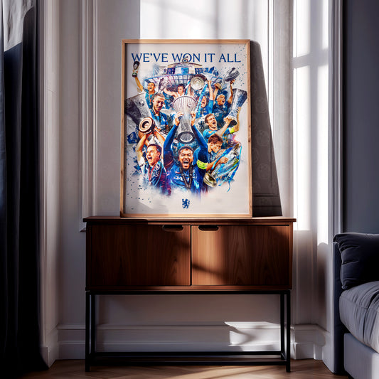 Discover our incredible collection of Chelsea football posters, showcasing iconic players, historic moments, and the pride of Stamford Bridge. Each poster is beautifully designed to capture the energy and passion of the Blues, making them perfect for any Chelsea fan.
