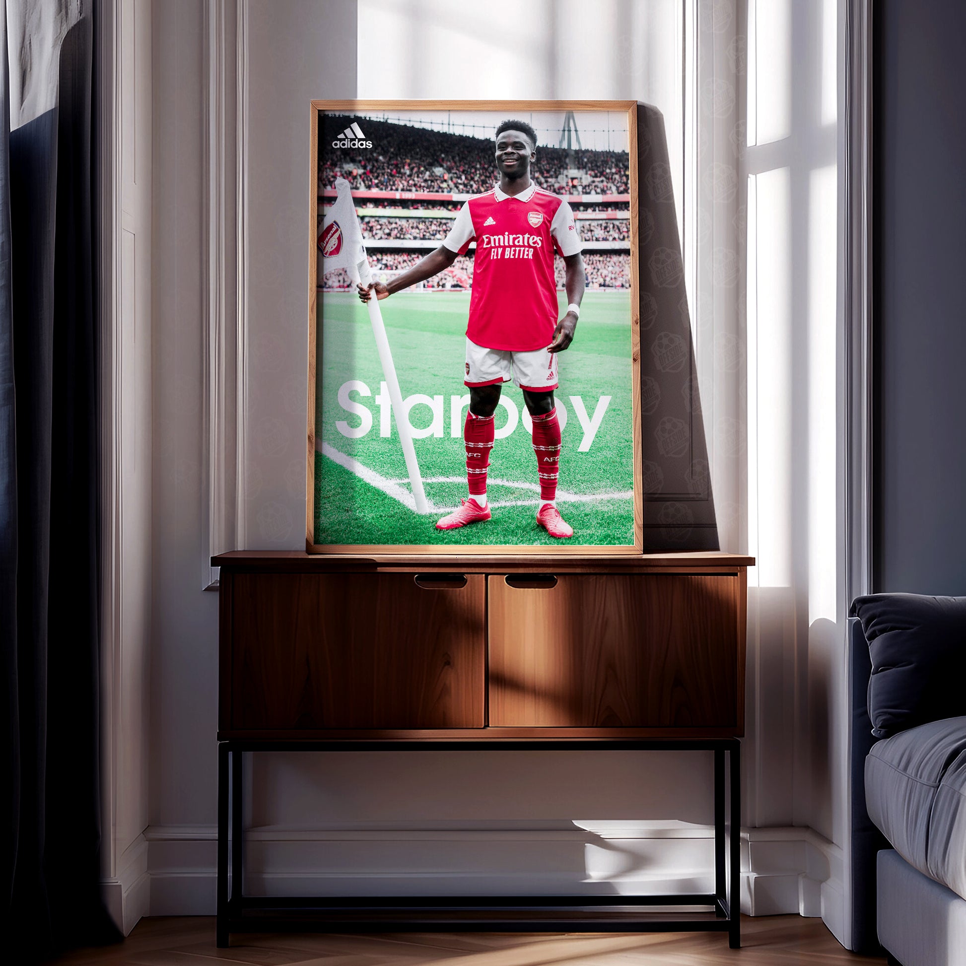 Enhance your space with this premium poster of Arsenal 'Starboy' Bukayo Saka.