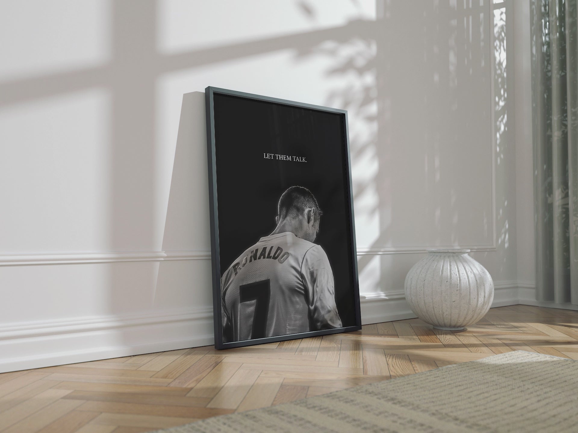 Enhance your space with this premium poster of Real Madrid legend Cristiano Ronaldo 'Let Them Talk'.