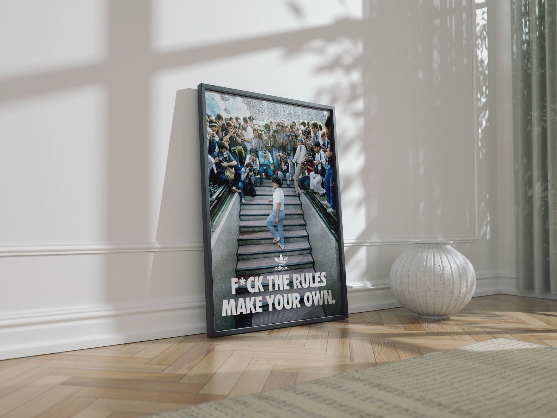 Enhance your space with this premium poster of Argentina legend Diego Maradona 'F The Rules'.