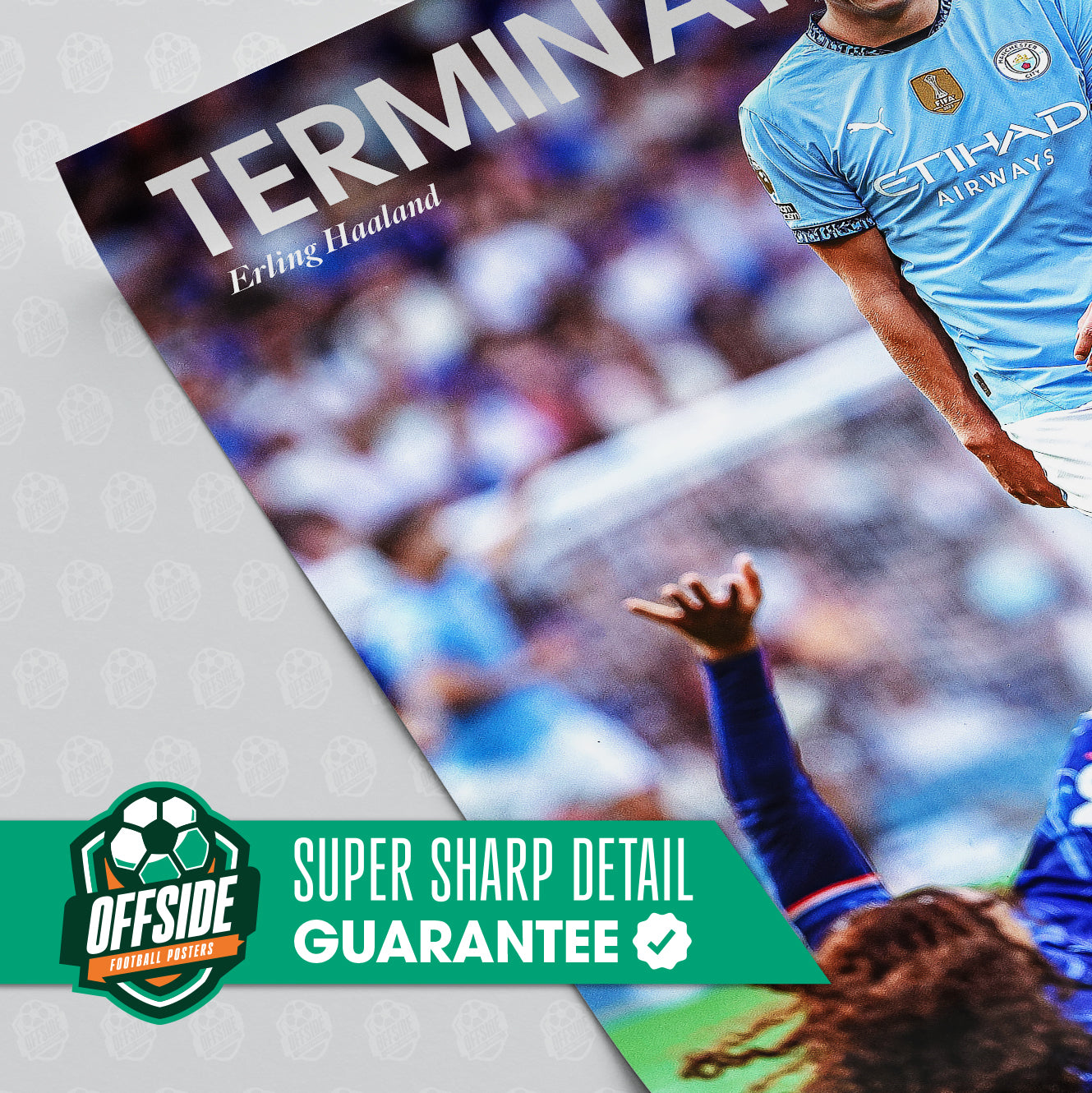 Enhance your space with this premium poster of Manchester City striker Erling Haaland 'Terminator'.