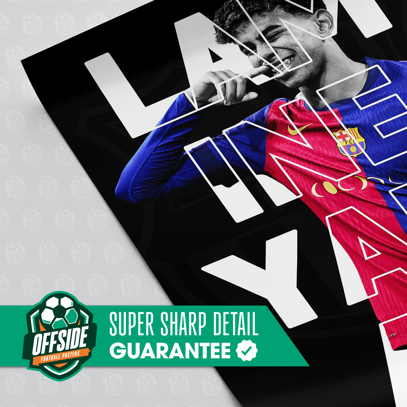 Enhance your space with this premium poster of Barcelona wonderkid Lamine Yamal.