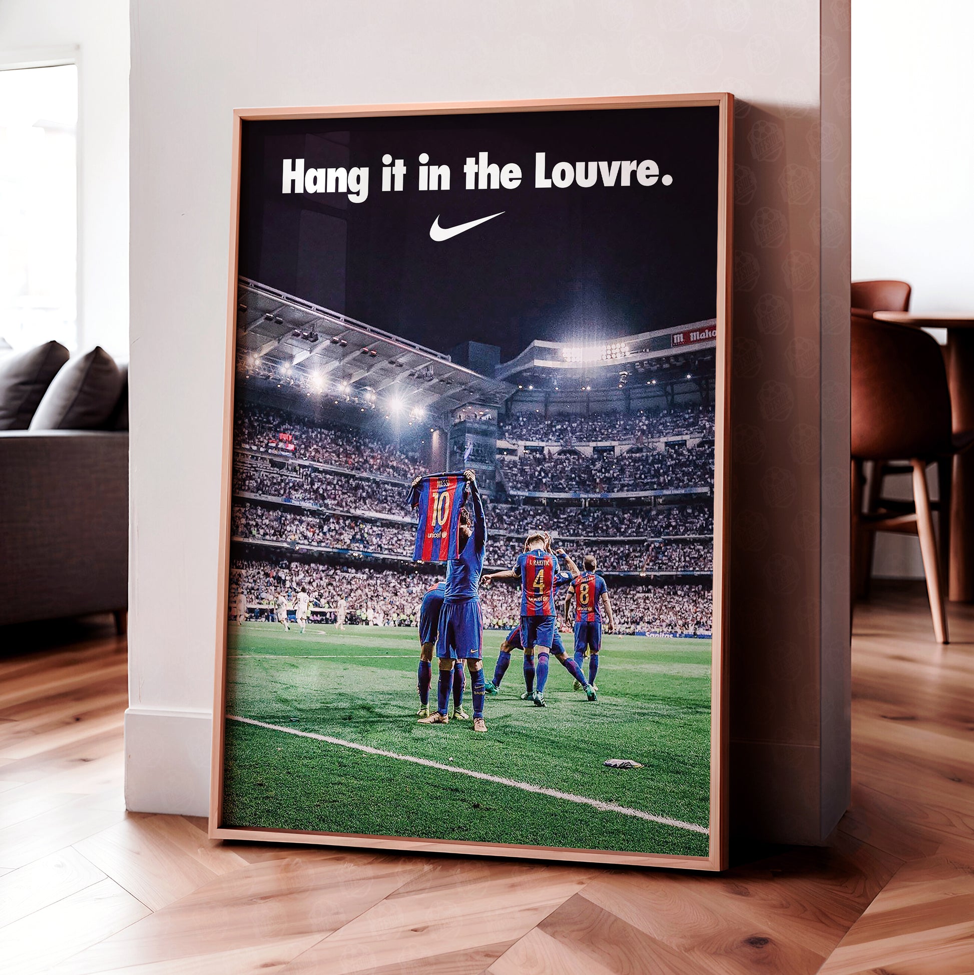 Enhance your space with this premium poster of Barcelona legend Lionel Messi 'Hang It In The Louvre'.