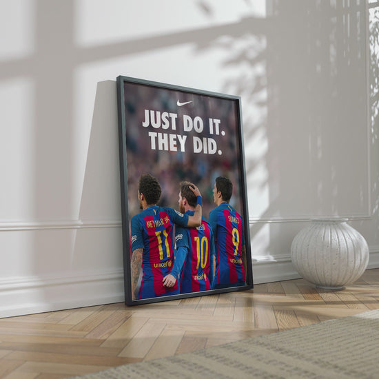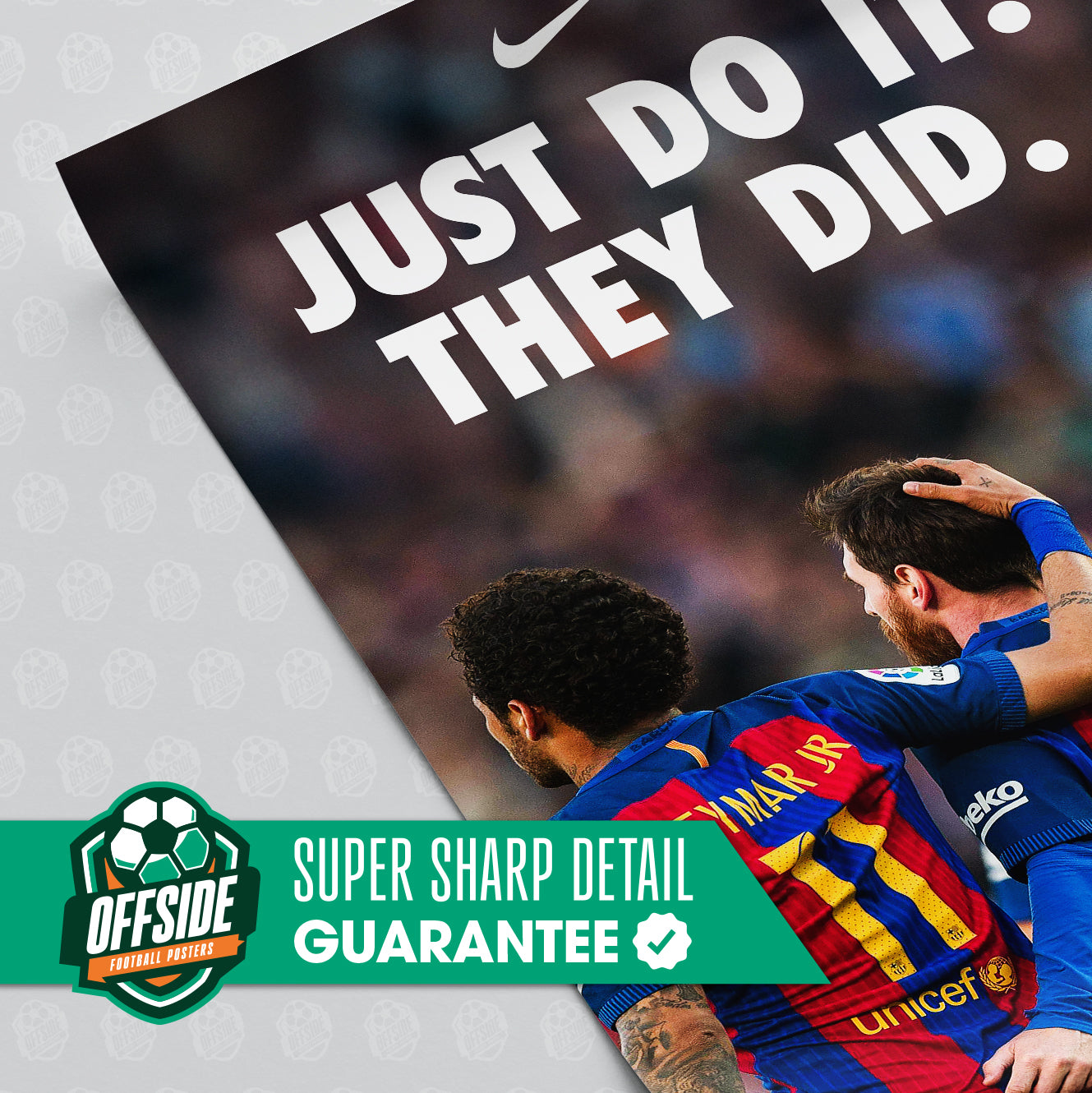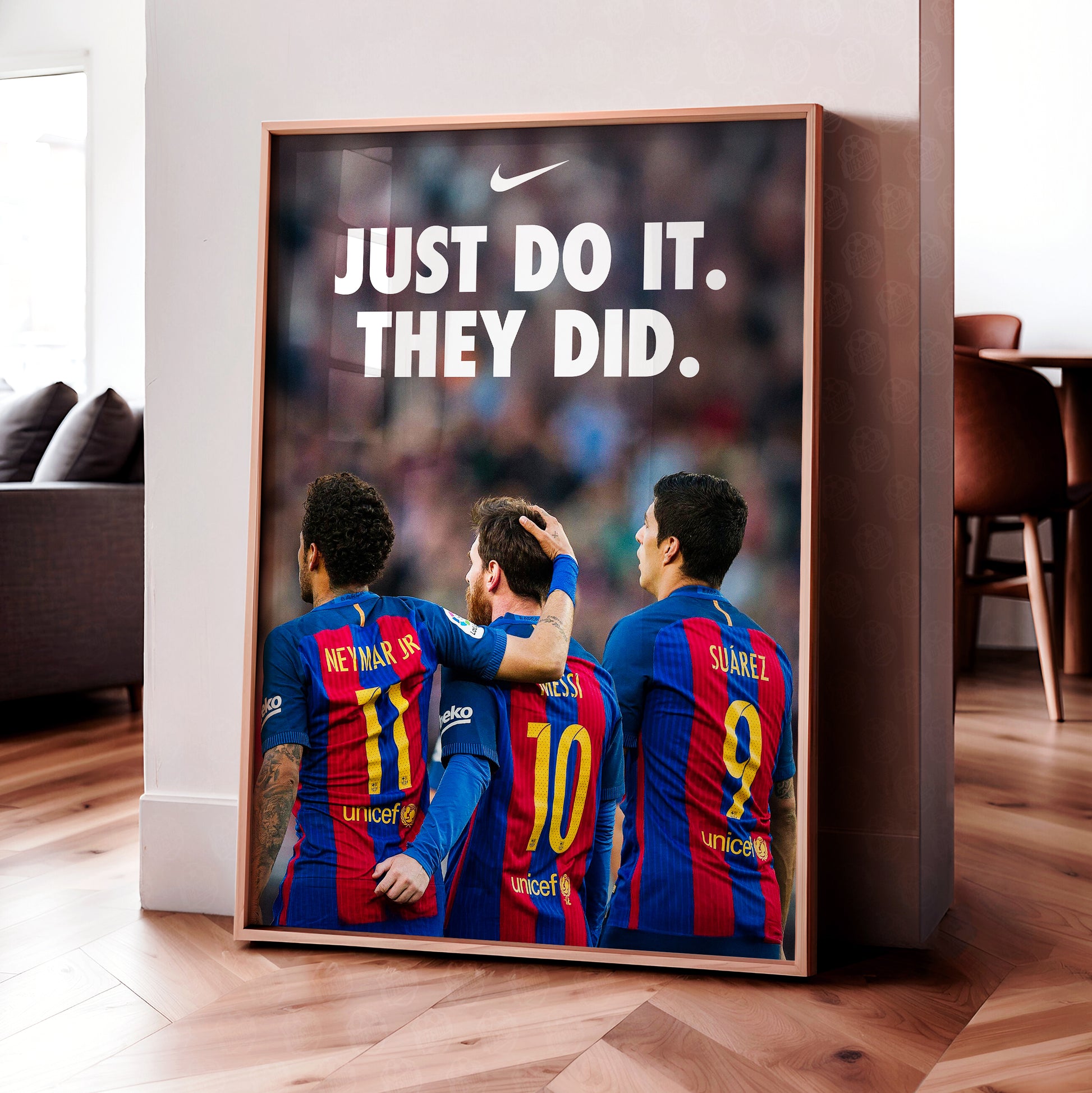 Enhance your space with this premium poster of Barcelona legendary trio Suarez, Neymar & Messi.