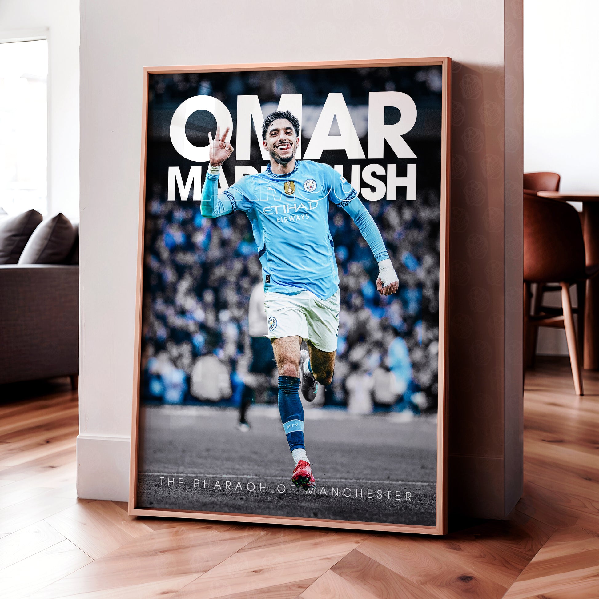 Enhance your space with this premium poster of Manchester City forward Omar Marmoush.