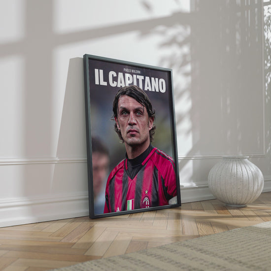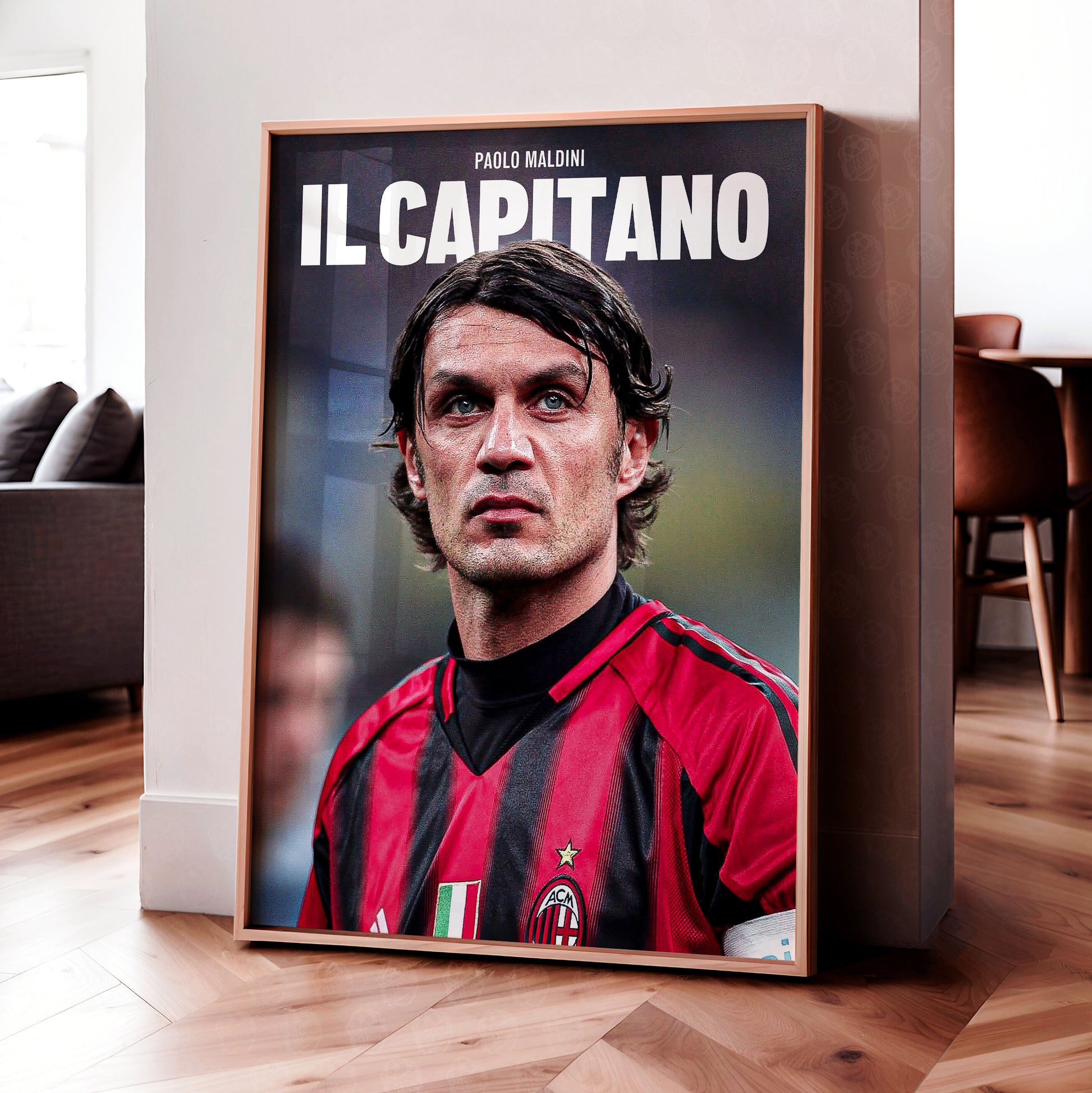 Enhance your space with this premium poster of AC Milan legend Paolo Maldini 'Il Capitano'.
