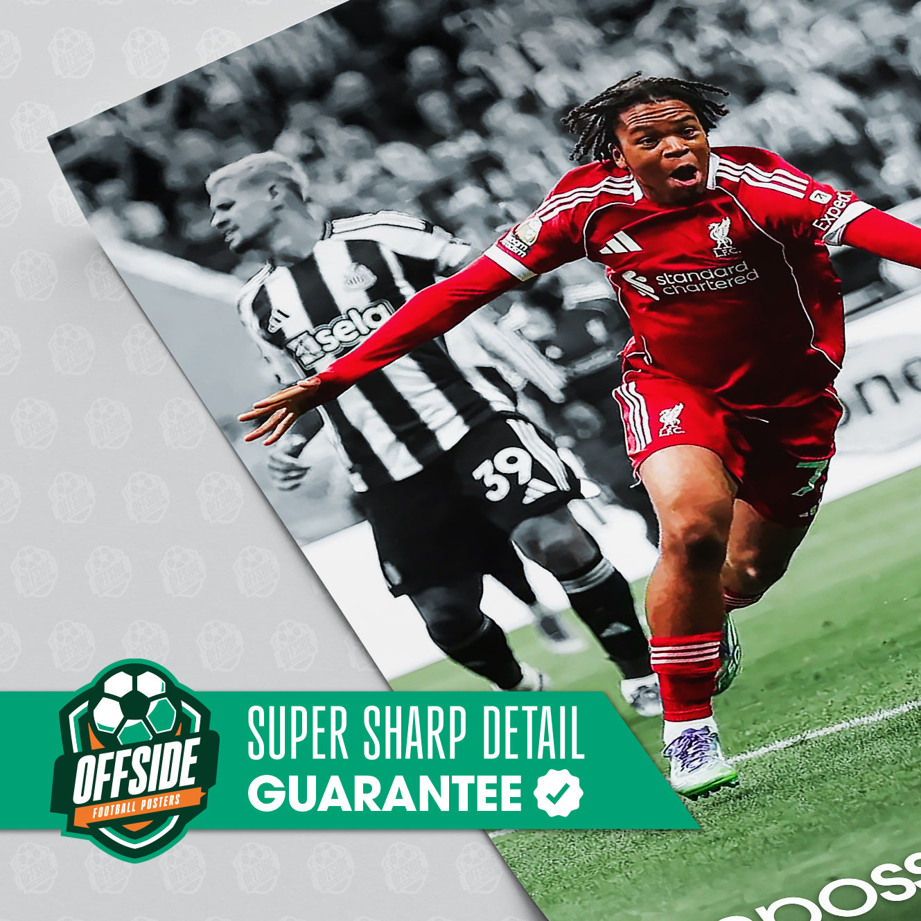 Enhance your space with this premium poster of Liverpool forward Rio Ngumoha