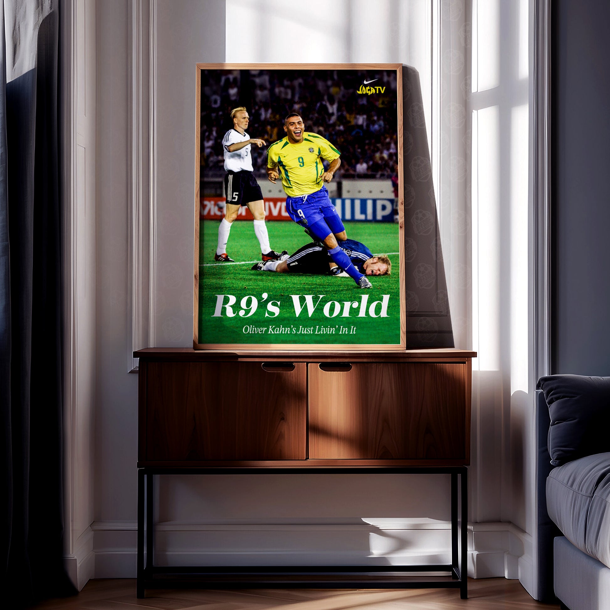 Enhance your space with this premium poster of Brazil legend Ronaldo 'R9's World'.