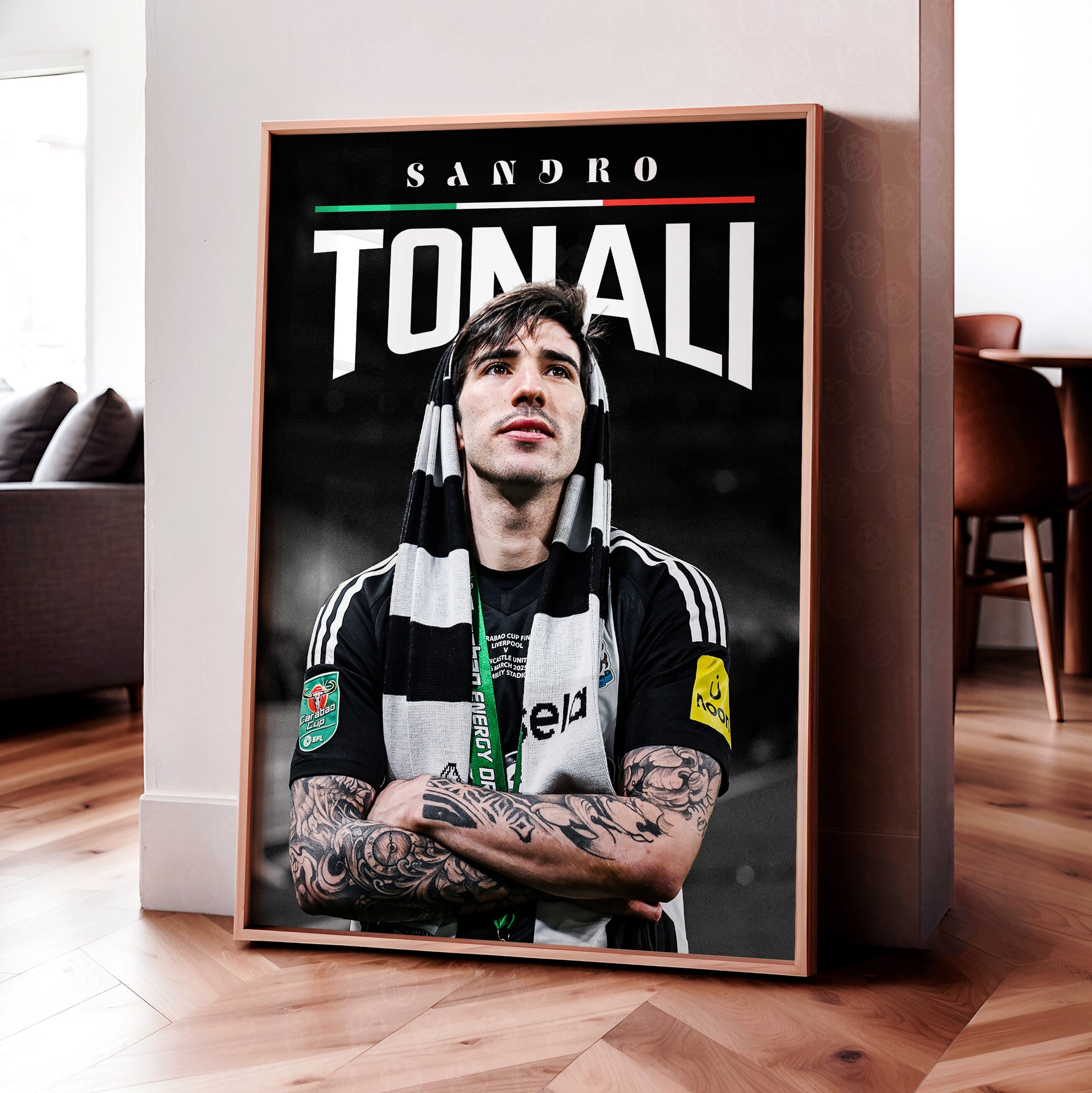 Enhance your space with this premium poster of Newcastle United player Sandro Tonali after their Carabao Cup triumph against Liverpool.
