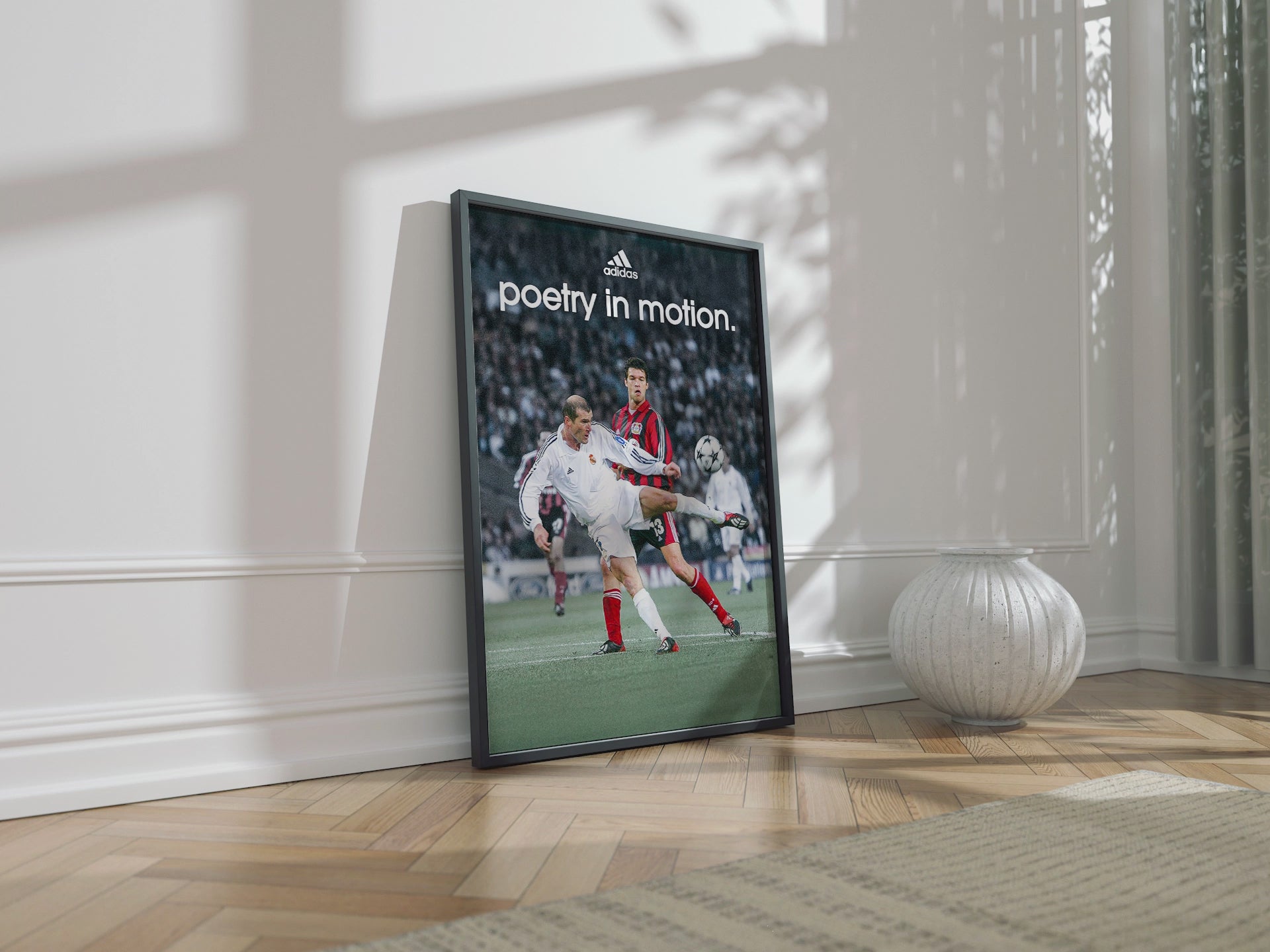 Enhance your space with this premium poster of Real Madrid icon Zinedine Zidane 'Poetry In Motion'.